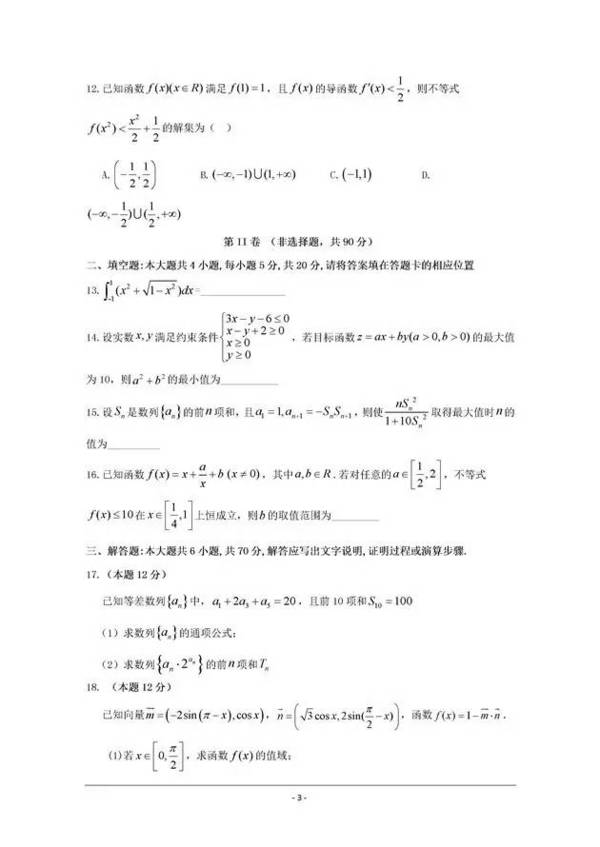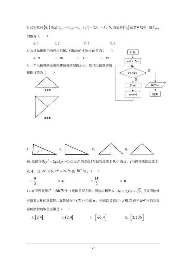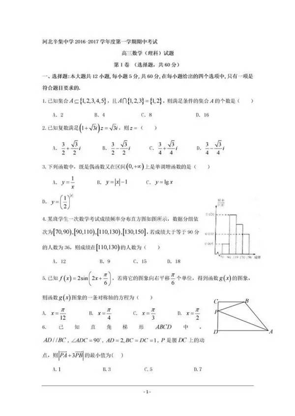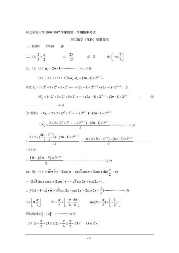 2016~2017辛集中學高三期中理科數學試題及答案