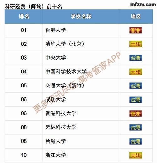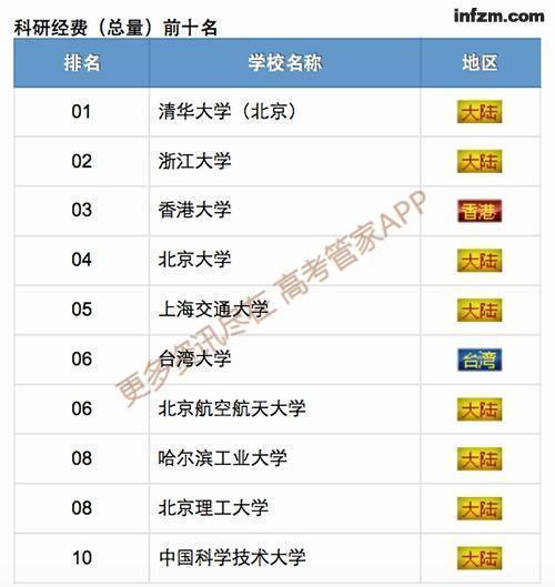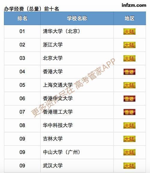 兩岸四地,內(nèi)地臺(tái)灣香港澳門,怎么比都是清華最有錢。各校的科研經(jīng)費(fèi)總量和辦學(xué)經(jīng)費(fèi)總量,清華大學(xué)(北京)均排于榜首,堪稱“最有錢”的大學(xué)無疑。