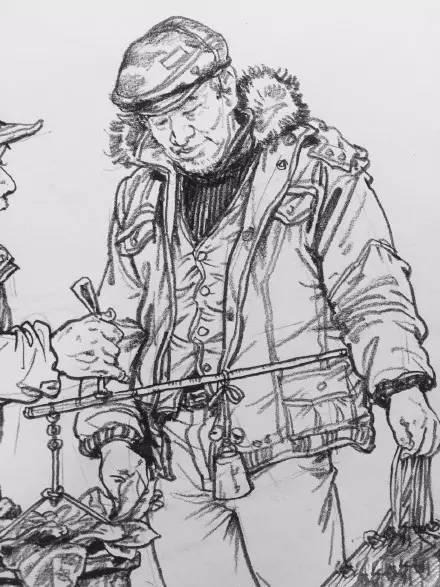 (2)起稿的時(shí)候,我們已經(jīng)對(duì)所畫的對(duì)象進(jìn)行了一遍理解,在進(jìn)入正稿階段可以從局部出發(fā),一般從前面的人物的頭開始畫。人物的頭部是精神面貌的重點(diǎn),所以要畫得細(xì)致些。