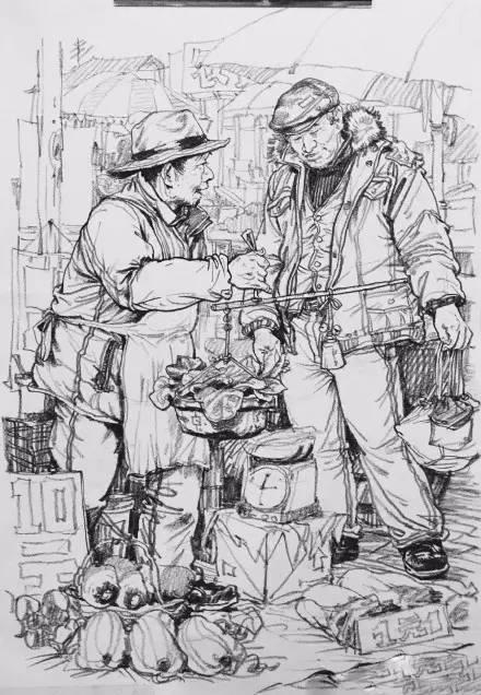 (1)構(gòu)圖,面對(duì)人物組合的場景,不宜馬上就動(dòng)手畫,首先應(yīng)該靜下心來,用幾分鐘的時(shí)間認(rèn)真觀察人物組合之間的關(guān)系。要做到心中有數(shù),再著手起稿。要特別注意人物之間的形體關(guān)系。