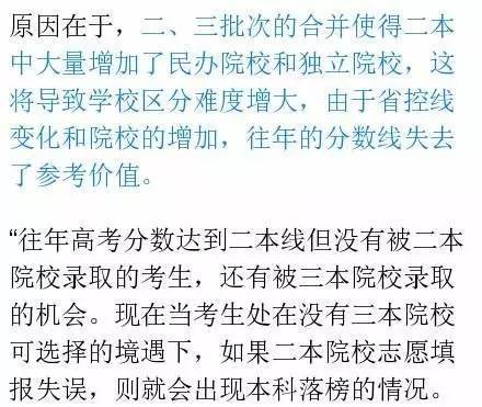 正確解讀:部分原本二批院校可能提到本一批,部分原本二院校與本三批合并為本二批。