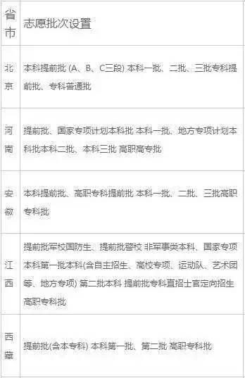 不同省份,可以根據當地的需求,設定不同的錄取批次,就比如16年的部分地方錄取批次設置: