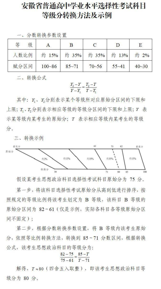新安晚報 安徽網 大皖新聞訊 轉換時賦分起點為30分,原始成績轉化為五個等級后再重新賦分計入高考總成績。繼高考改革方案出臺后,安徽省教育廳又公布了普通高中學業水平選擇性考試成績計入高校招生錄取總成績方式。